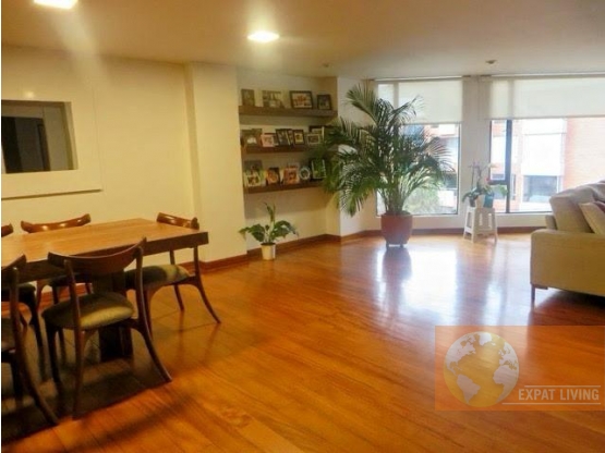 Cod. 1512 Amplio Apartamento en venta ubicado en el exclusivo sector de Chicó, en un tercer piso exterior, con amplios espacios y excelente iluminación natural. Cuenta con un área de 147 m². Dispone de sala y comedor independientes, baño social, estudio, cocina cerrada, zona de lavandería, CBS. Tiene 3 alcobas: la principal con baño privado y dos alcobas auxiliares que comparten baño. El apartamento cuenta con pisos en madera, gas natural y 3 garajes en línea.